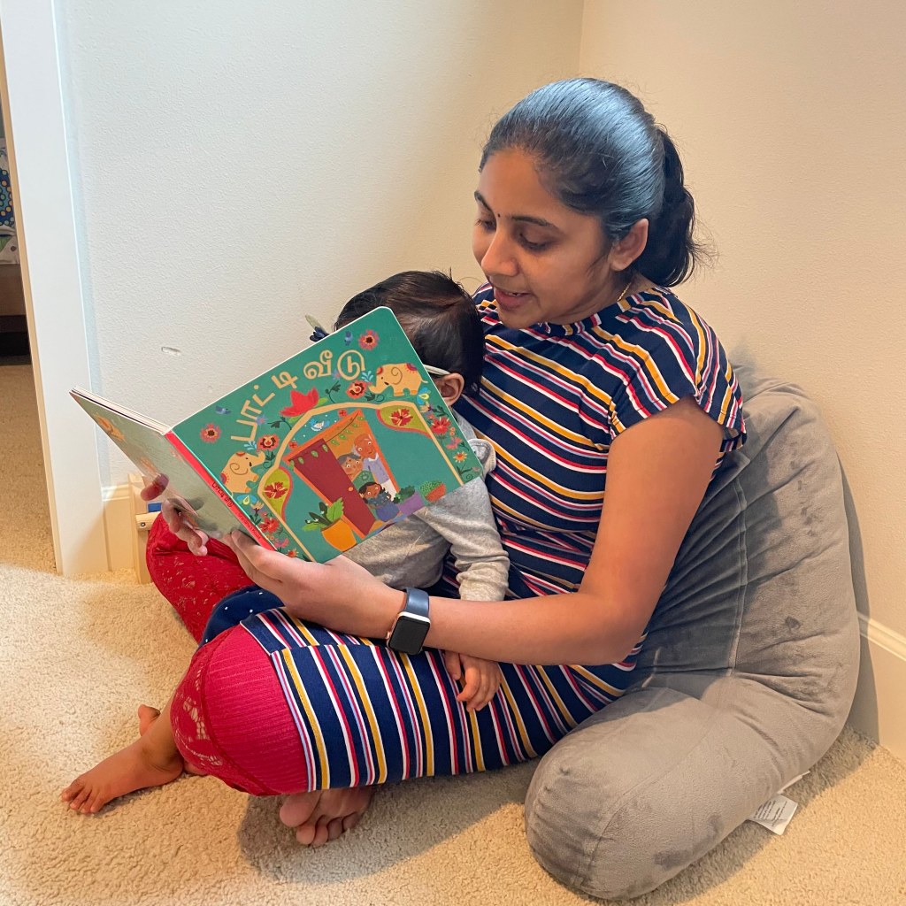 At the moment, we neither have family around nor can we visit our friends nearby. But we’ve been celebrating Kaanum Pongal in our own little way. LO and I have been enjoying reading this beautiful children’s Tamil book by Vaaranam Books called “Paati veedu” which describes what happens during the visit to grandma’s house from having grandma’s yummy food to chit-chatting with aunts and playing with cousins. The storyline and illustrations so resonated with my Kaanum Pongal celebrations as a kid.